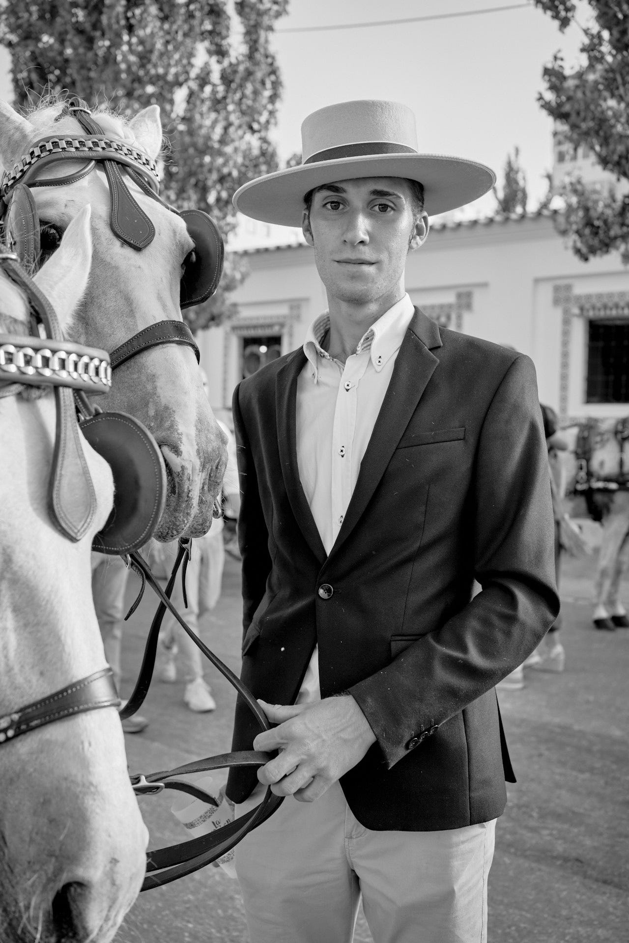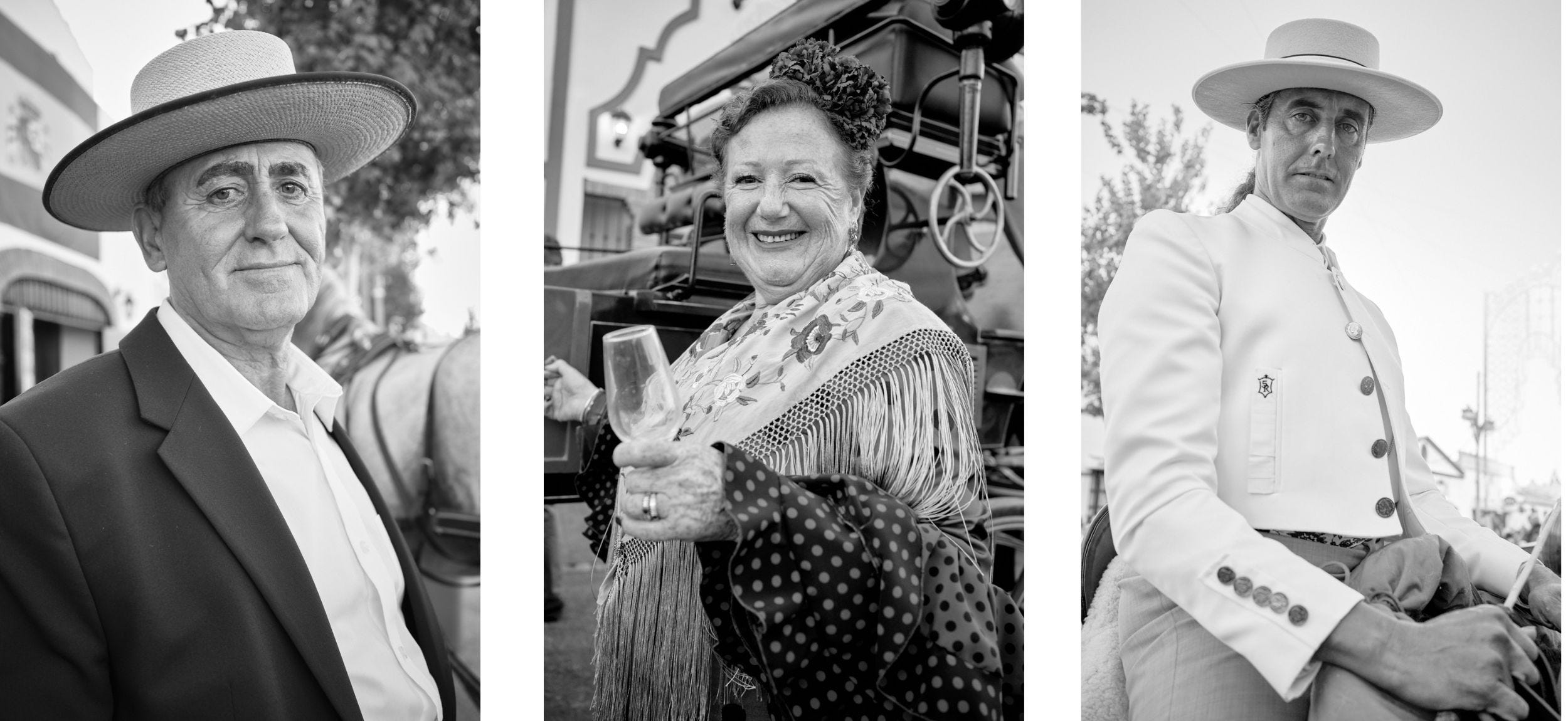 Most of the people I photographed were from the feria— riders, families in Andalusian clothes, people resting in the shade with dust on their shoes. At first I wasn’t trying to document anything, but the portraits kept adding up. At some point it stopped feeling like a handful of chance encounters and started to feel like a memory taking shape.